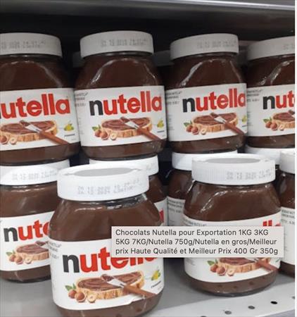 We now have chocolate bars available for sale. Best prices offered. All products are original brand and authentic, supplied by the manufacturer. We provide quality brand-name products, offer the most competitive prices on the market, and also offer significant discounts depending on the quantity of your order.We supply Ferrero Nutella chocolate;Nutella 15x350gr.1 pallet = 99 cartons.1 container = 23 pallets (2277 cartons).Fresh produceNutella 15x400g1 pallet = 99 crates1 container = 23 pallets (2277 cartons)Fresh produceNutella 6x600g1 pallet = 128 cartons1 container = 23 pallets (2944 cartons).Fresh produceNutella 6x750g1 pallet = 128 crates1 container = 23 pallets (2944 cartons)Fresh produceNutella 6x800g1 pallet = 128 crates1 container = 23 pallets (2944 cartons)Fresh produceNutella 15x350gr.1 pallet = 99 cartons.1 container = 23 pallets (2277 cartons).Fresh produceFerrero Nutella spread in 350g, 400g, 600g, 750g, 800g, 1kg, 3kg and 5kg jars. We offer Ferrero products such as Nutella chocolate spread in various sizes.Weight: 230g, 350g, 400g, 600g, 800g, 850g, 1Kg and others.Benefits :- The chocolate & milk taste of the candies is appreciated by all ages.- Good quality and better chewing. A characteristic of these candies is that they can be stored in warehouses for a long time without melting.- Suitable for wholesale / market sales / in-store retail / gifts / festival promotions.- Good snacking food that improves mood and provides energy.- Unique items. For more products, please contact me.The more details you provide about your preferred types of candy, the more timely we can provide you with product details and pricing information.- If your request is not listed, contact us and consult our website.