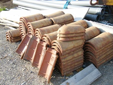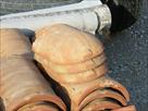 110 tuiles d'occasion 1/2 rondes en t-c couleur rouge nuancée paille dont 3 abouts d'aretier en tres bon etat .Possibilité de livraison dans 1 rayon de 20 km autour de Gap . H. int.=7,5 cm; larg. =24 cm ;long. = 105 cm pour 3 unités.A emboitement mécanique.