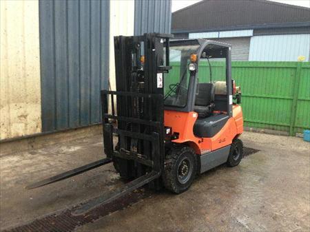 Chariot élévateur industriel FEELER 2.5T gaz en trés bon état, année 2012 et 80 heures de travail, entretien , VGP, livraison possible, prix HT.