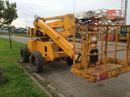 Nacelle articulée HAULOTTE HA 15DX en bon état de fonctionement, année 2001 et 4493 heures, hauteur de travail 15 métres, 4 roues motrices, livraison possible, prix HT.