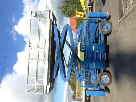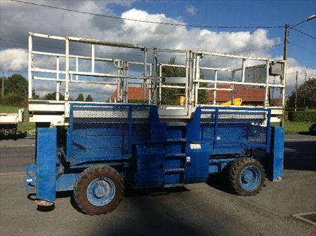 Nacelle ciseaux Génie GS3384, 4/4 diesel, année 2002 et 2947 heures, extensions manuelles, stabilisateurs, pneus remplissage mousse, hauteur de travail 12 métres, entretien et VGP éffectués, livraison possible, prix HT.