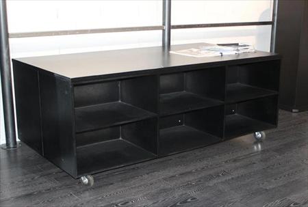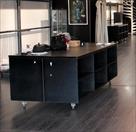 ilot central noir 2.30mX1.20m 6 cases par coté plus un a poser au mur 2.30mX.060m le tout sur roulettes